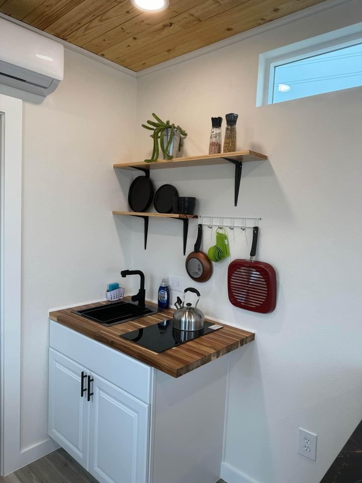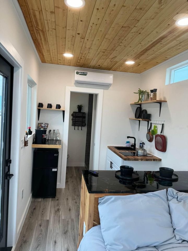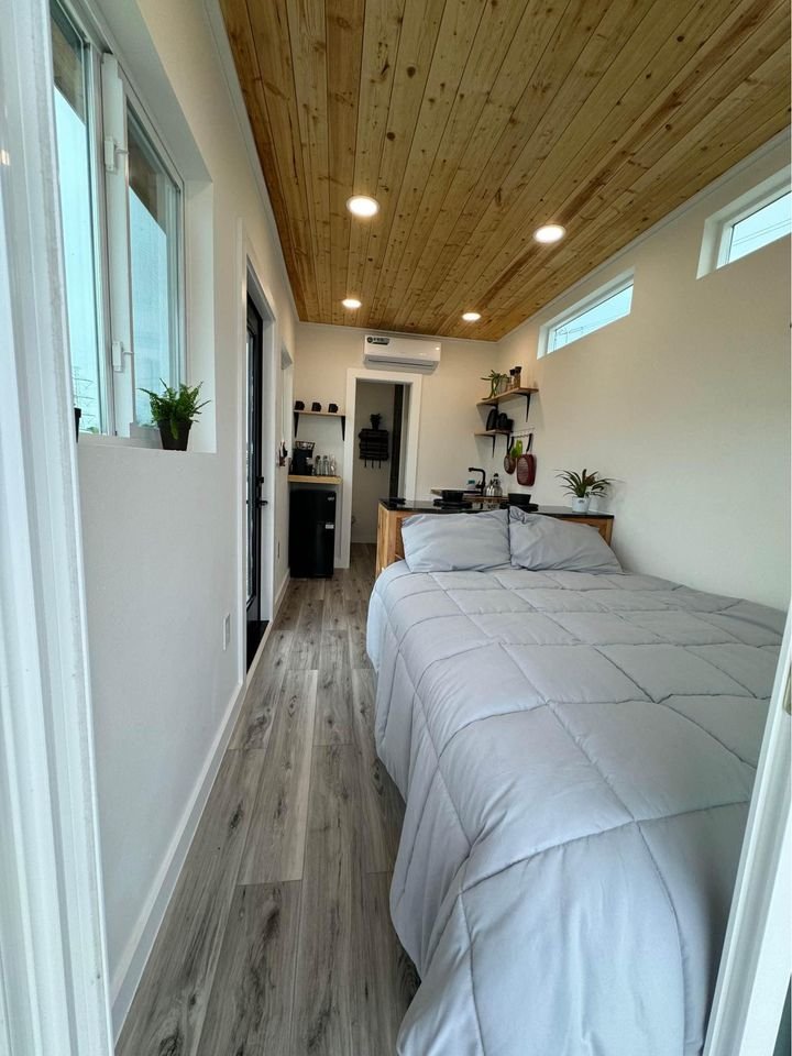 This custom shipping container duplex has a ton of awesome features including a breakfast nook, tile shower, upgraded mirrors and more!