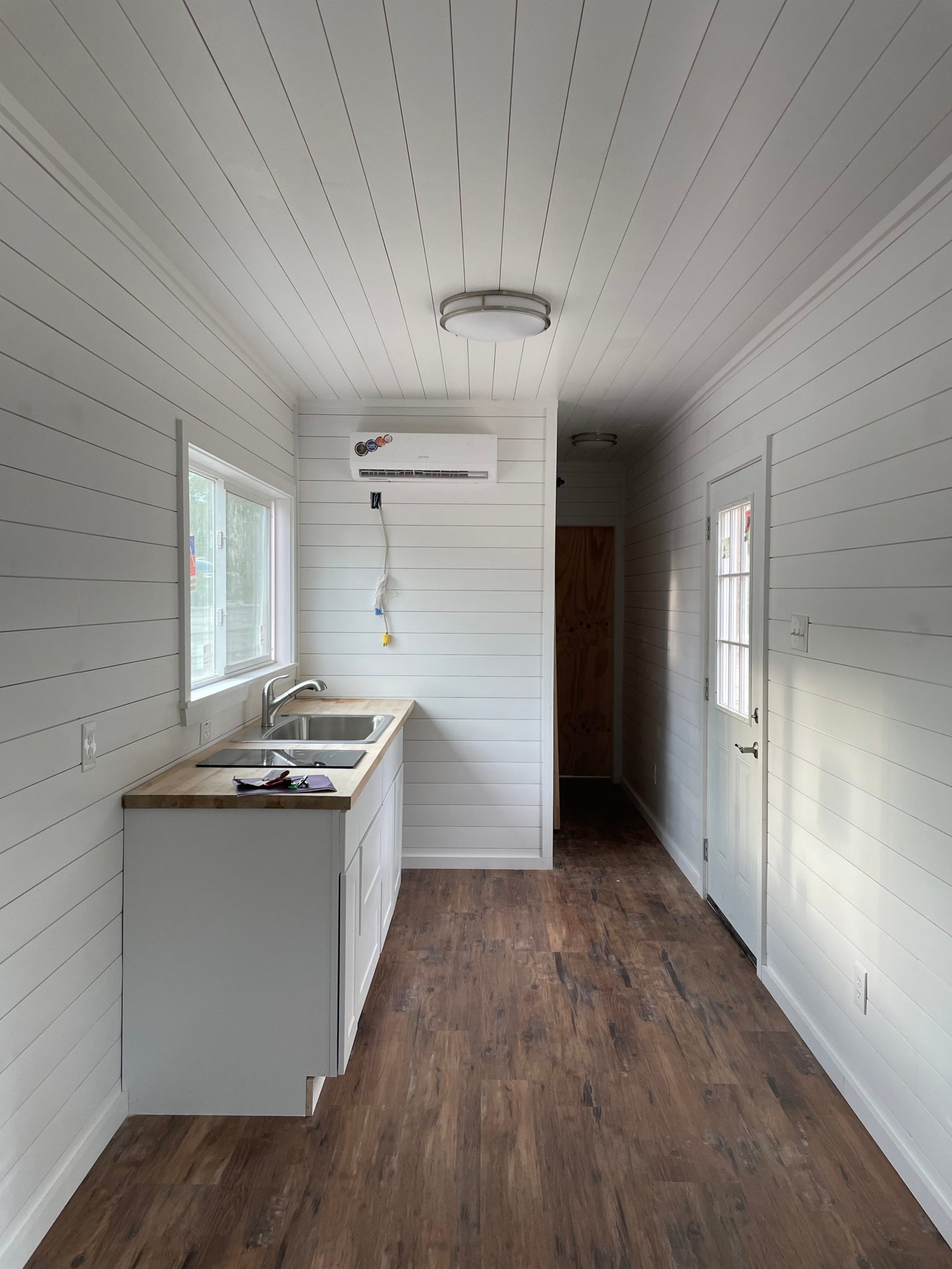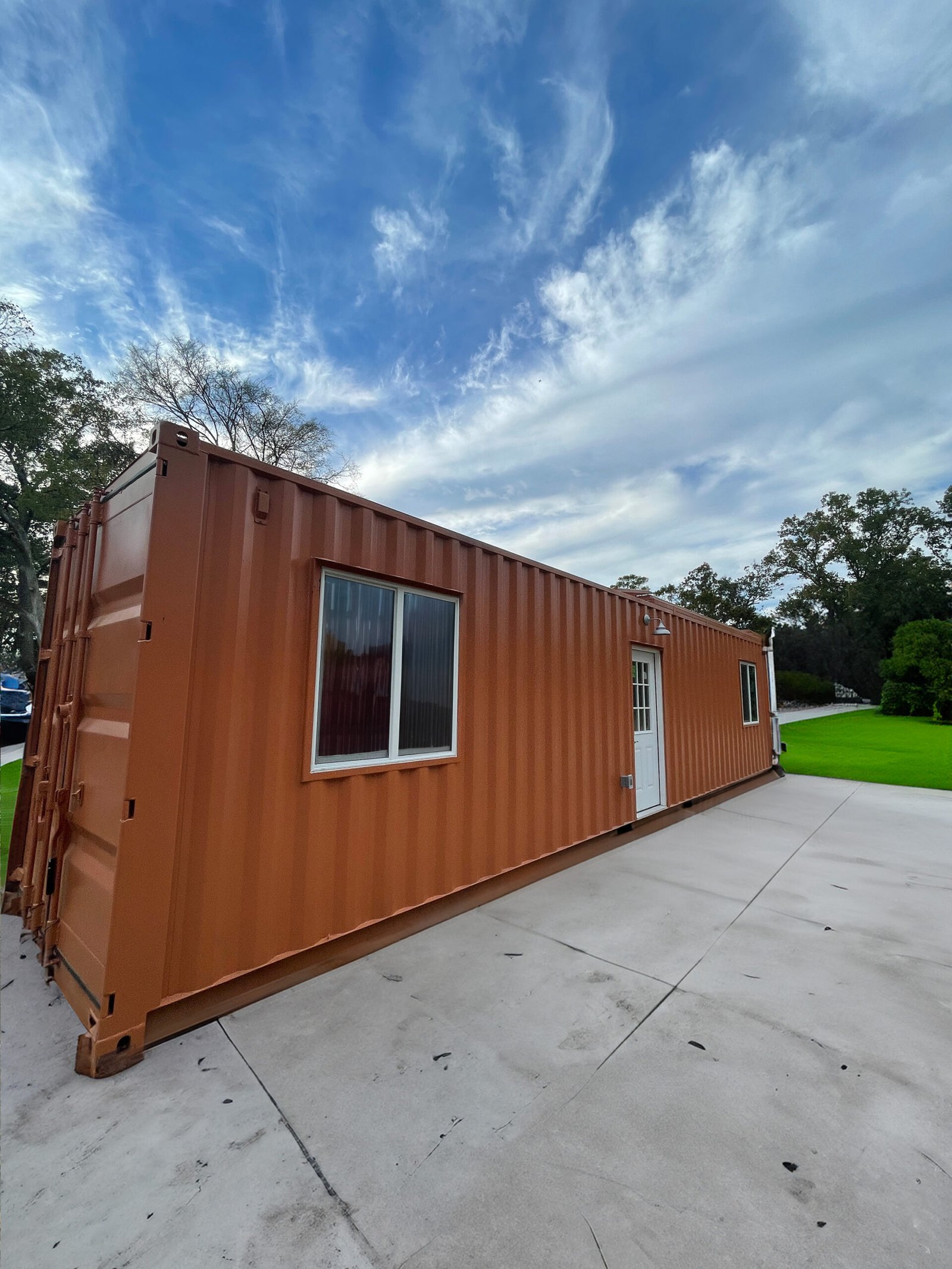 The Bluegrass model is similar to our Birch model with an “entertain first” layout with the main entrance within the cargo doors. It features a bathroom with a hallway that leads to the bedroom at the end of the container.