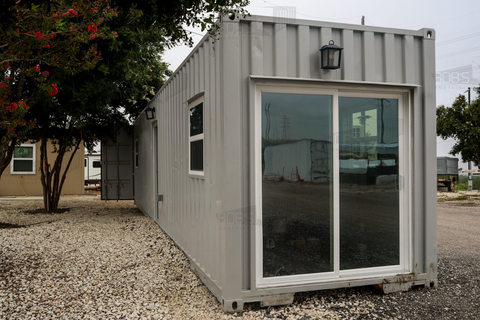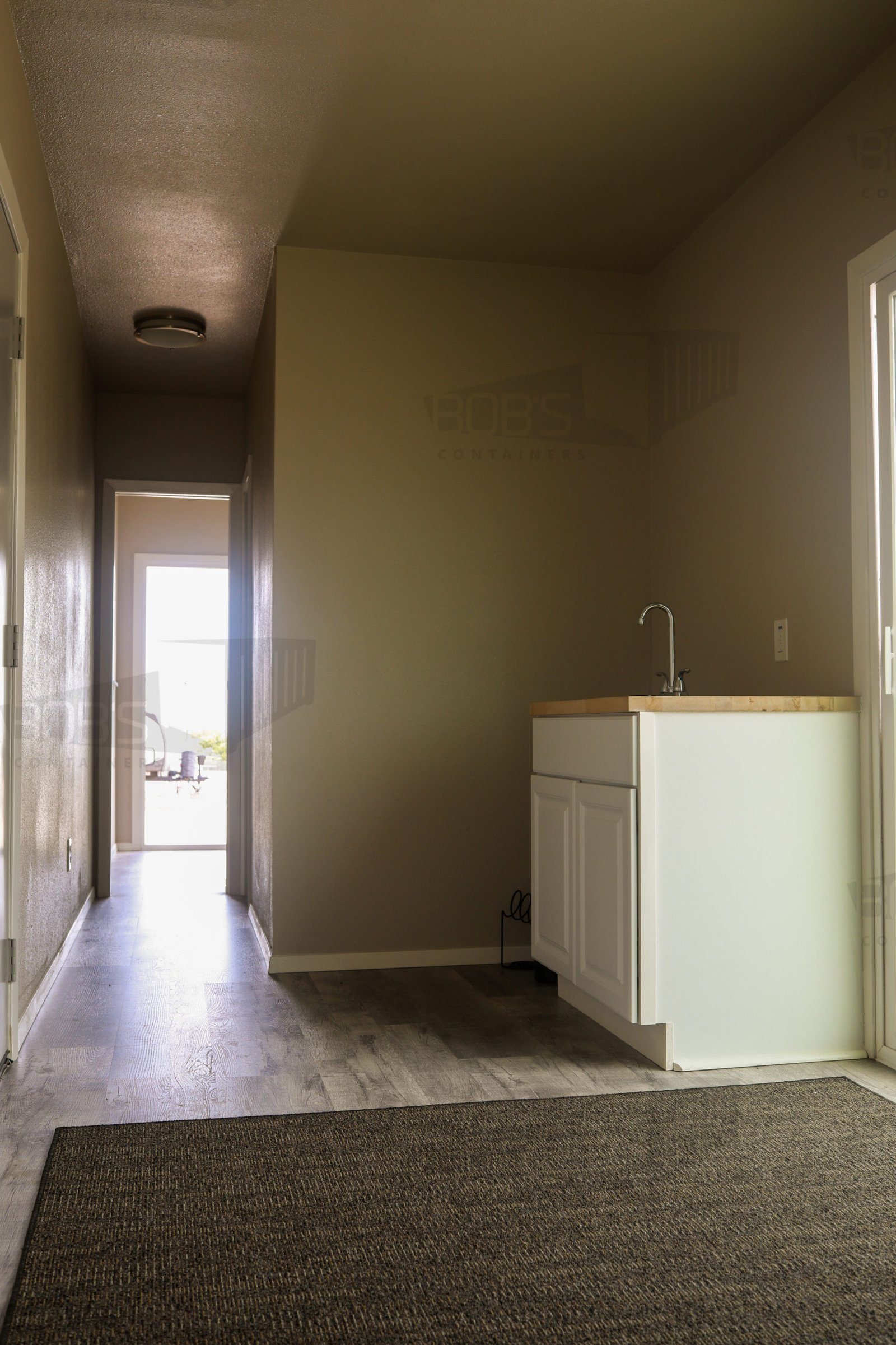 The Evergreen fully utilizes every foot of a shipping container to provide two bedrooms. It features two bedrooms, one on each end of the container.  A hallway leads to the bathroom and second bedroom.